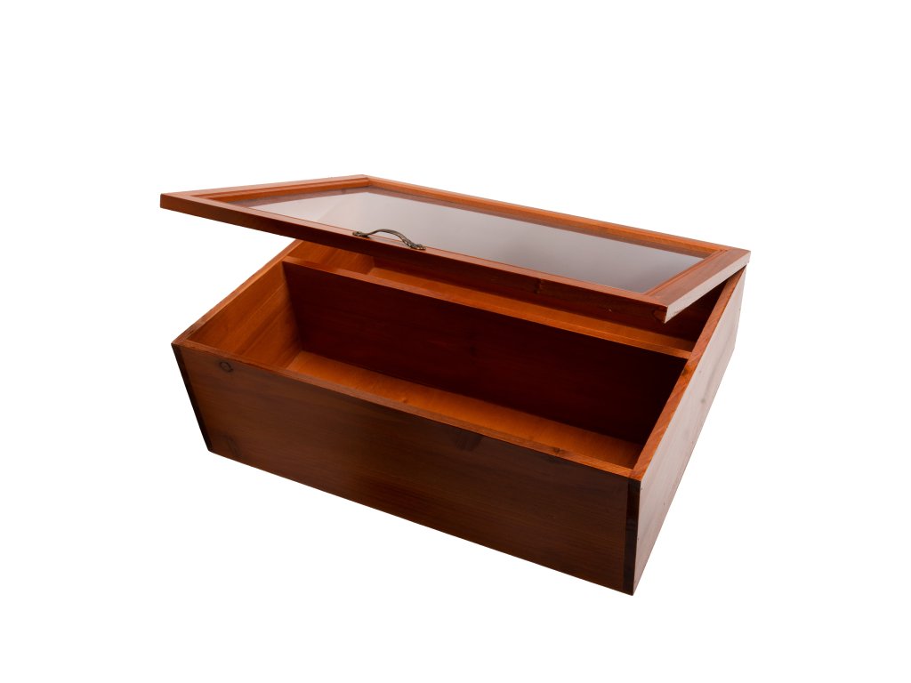 Rustikální dřevěná vitrína s akrylovým oknem